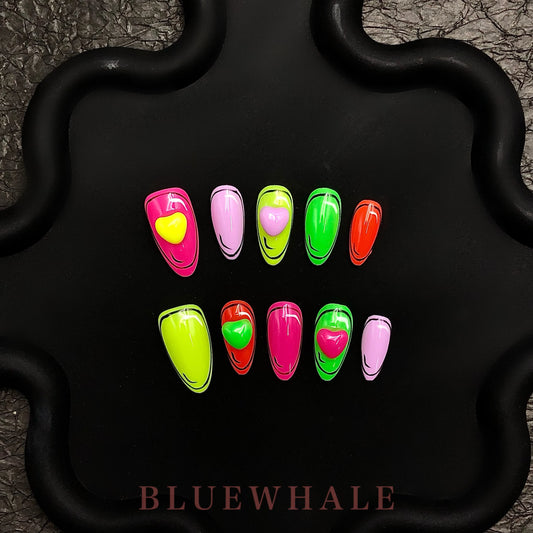 Colorful High Quality Acrylic False Nails Short Almond Heart Press on Nails