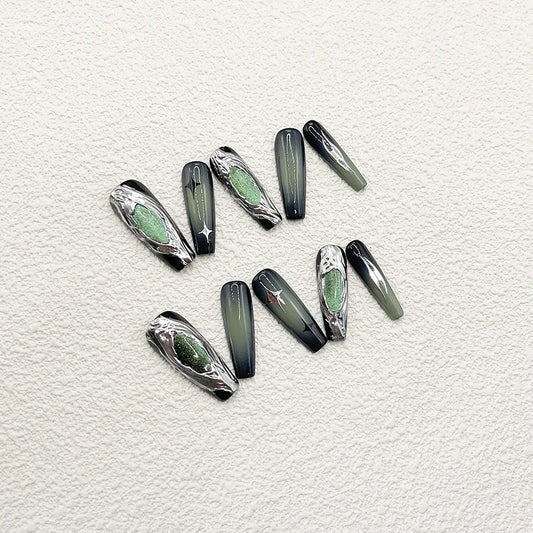 Green Hand Pressed Nail with Glue False Nails Manufacturers Acrylic Press on Nails