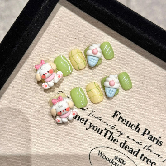 High Quality Cute Short Nails Pure Hand-painted 3D Cartoon Press on Nails