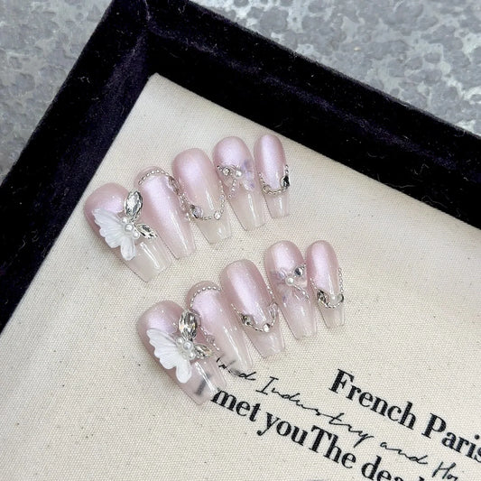 High Quality Fingernail Pressing Glitter Luxury Reusable and Detachable Cat's Eye pink Artificial False Nails