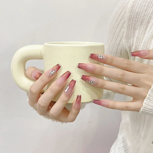 High Quality Luxury Ballerina Coffin Gel Stick on Nails Full Cover Handmade Press on Nails