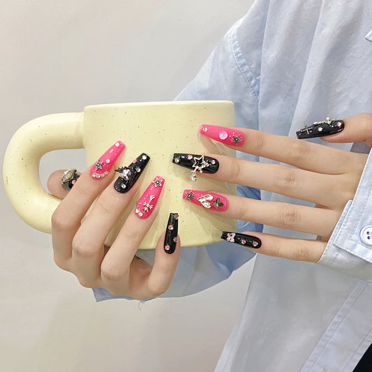 High Quality Artificial Nails Medium Length Full Cover Luxury Diamond Handmade Press on Nails Wear Nail
