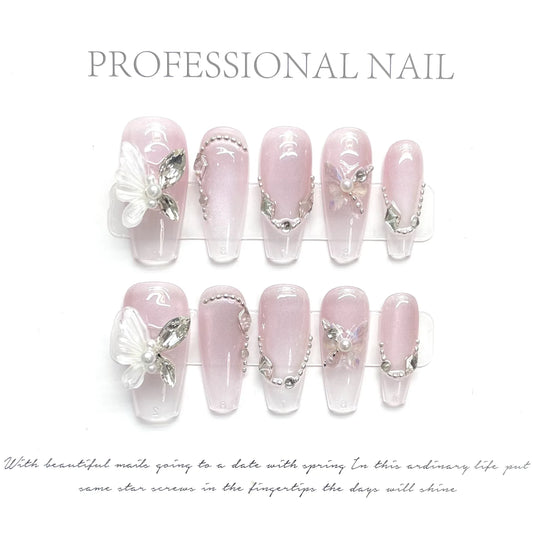 Hot Sale High Quality 10Pcs Jade Butterfly Floating Shadow Hand Pressing Short Nails Luxury Handmade Press on Nails