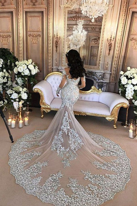 Long Sleeves V-Neck Lace Mermaid Wedding Dress On Sale