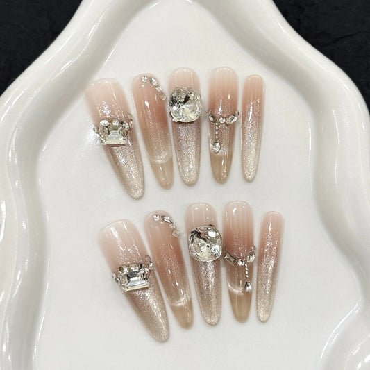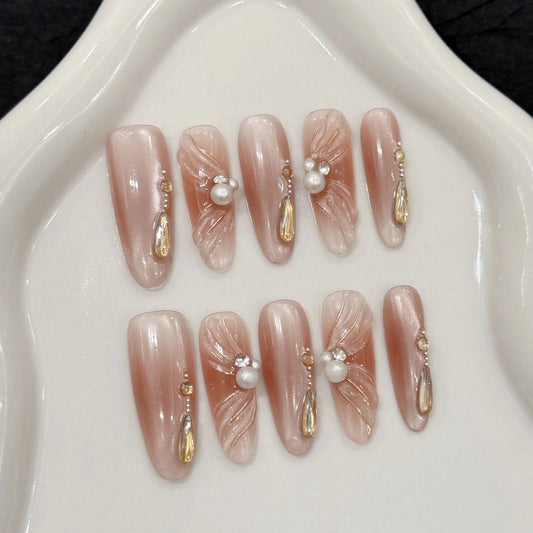 New Style High Quality Ballet-inspired Pure Desire Blush Cat-eye Champagne Ribbon Long Manual Wear Nails