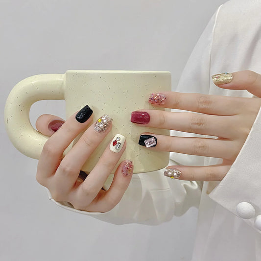 Press on Nails Color Short Almond square Stick on Nails Handmade Fake Acrylic Nails
