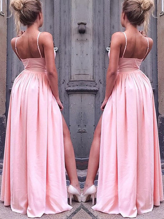A-Line/Elegant Sleeveless Straps Beading Satin Prom Dresses