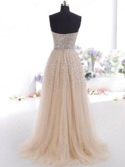 A-Line/Elegant Sweetheart Sleeveless Beading Tulle Prom Dresses