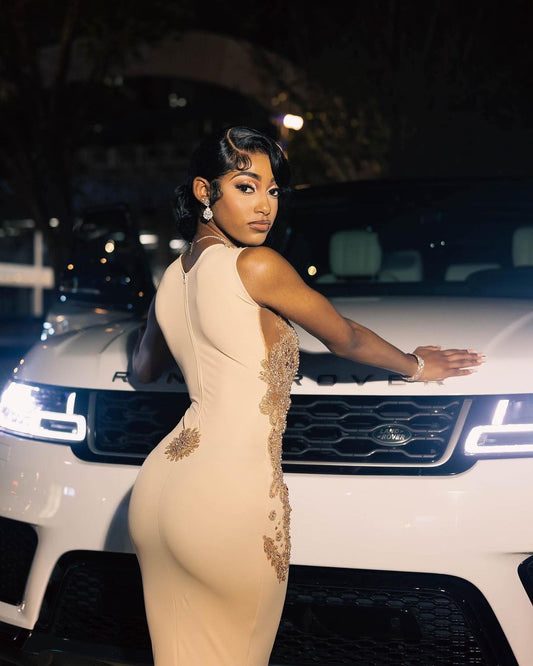 Beautiful Long Champagne Mermaid Sleeveless Beading Prom Dress With Lace