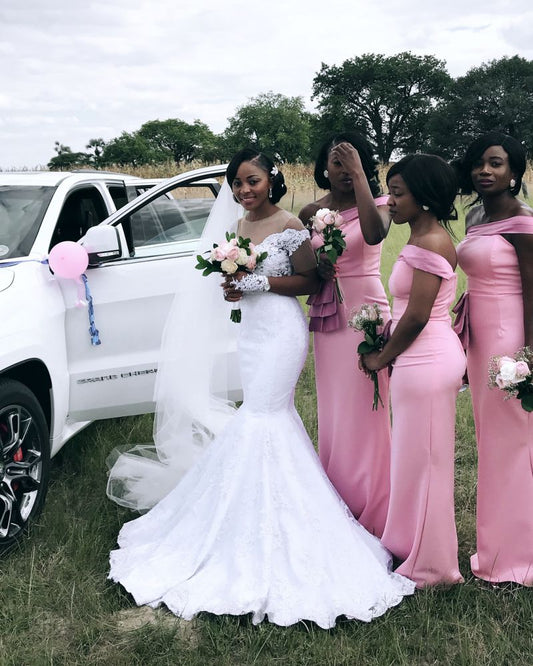 Affordable Off the Shoulder Mermaid Long Elegant Wedding Dresses
