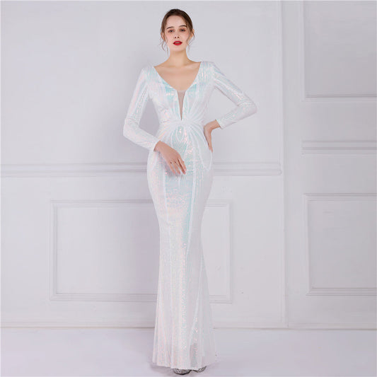 Banquet Elegant Long Sleeve Sequined Queen Fishtail Evening Dress