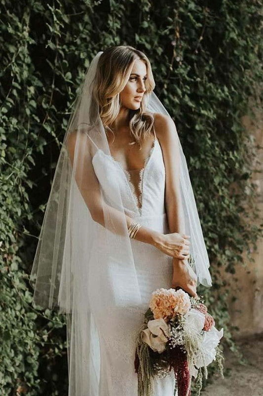 Gorgeous V-Neck Sleeveless Tulle Wedding Dresses Bridal Gowns