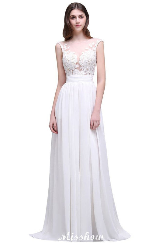 Cap Sleeves A-line Scoop Floor Length Lace Appliques Wedding Dresses