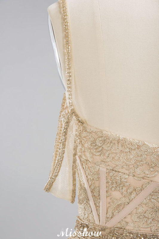 Illusion Neck Champagne Wedding Dress Sleeveless Summer Bridal Gown