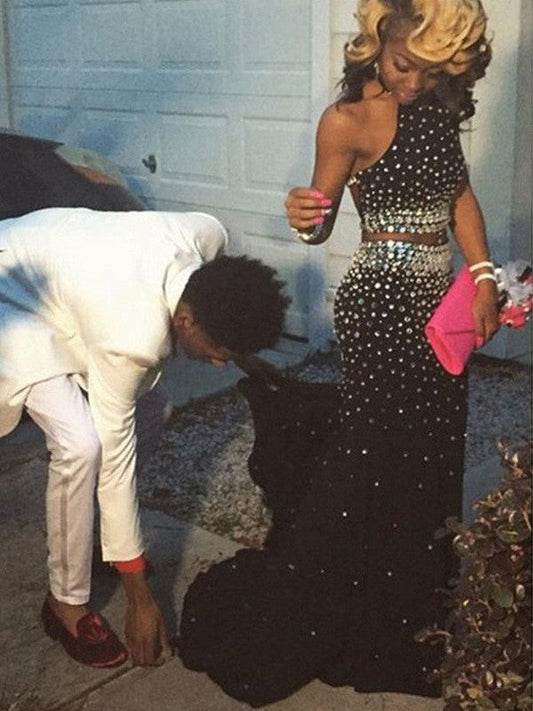 Etui-Linie One-Shoulder-Träger Ärmellos Pailletten Bodenlang Ballkleider