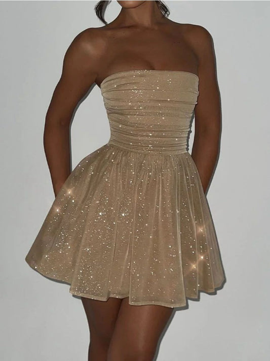 TARUXY Splice Trägerlosen Kleid Frauen Ärmellose Hohe Taille Schlank Backless Mini Kleider Dame Party Elegante Abendkleid Femme 2024