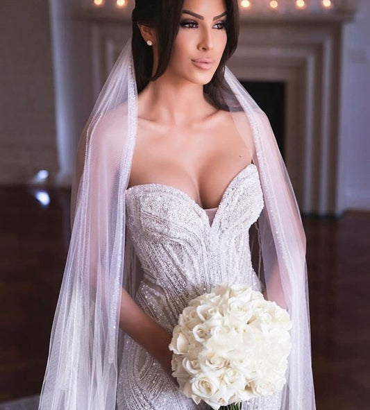 Trägerloses Herz-Ausschnitt Perlen Meerjungfrau Brautkleid Applikationen Tüll Brautmode