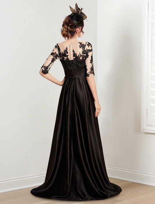 A-Linie/Princess-Kleid für die Brautmutter mit Applikationen und Gürtel