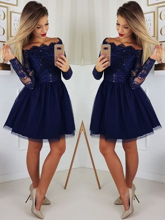 Elegante kurze A-Linie V-Ausschnitt Langarm Ballkleider