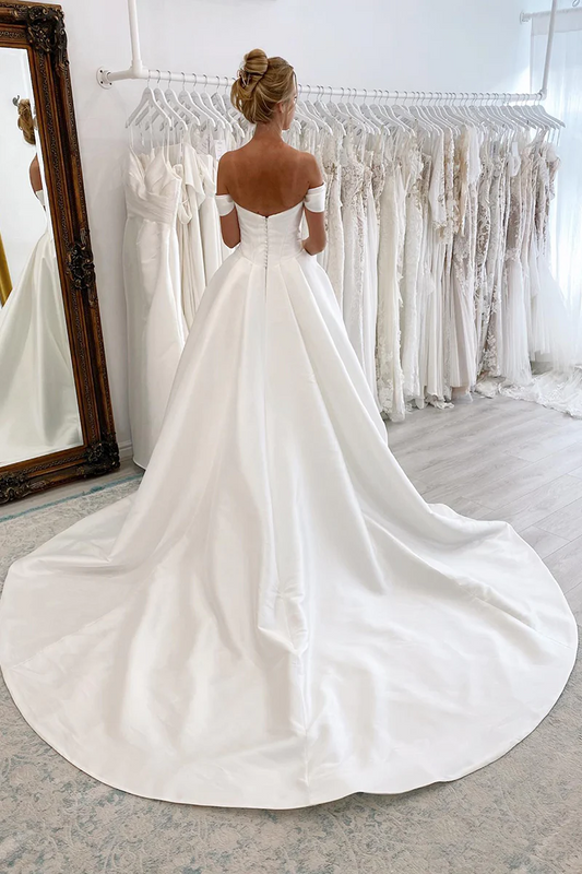 Ballkleid Off The Shoulder Satin Einfaches Hochzeitskleid Brautkleid