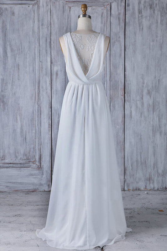 Erschwingliches A-Linien-Brautkleid mit asymmetrischer Spitze und offenem Rücken aus Chiffon