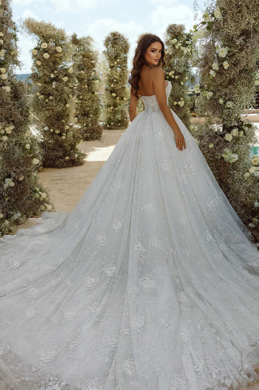 Luxuriöses ärmelloses A-Linien-Prinzessin-Ballkleid mit Spitze