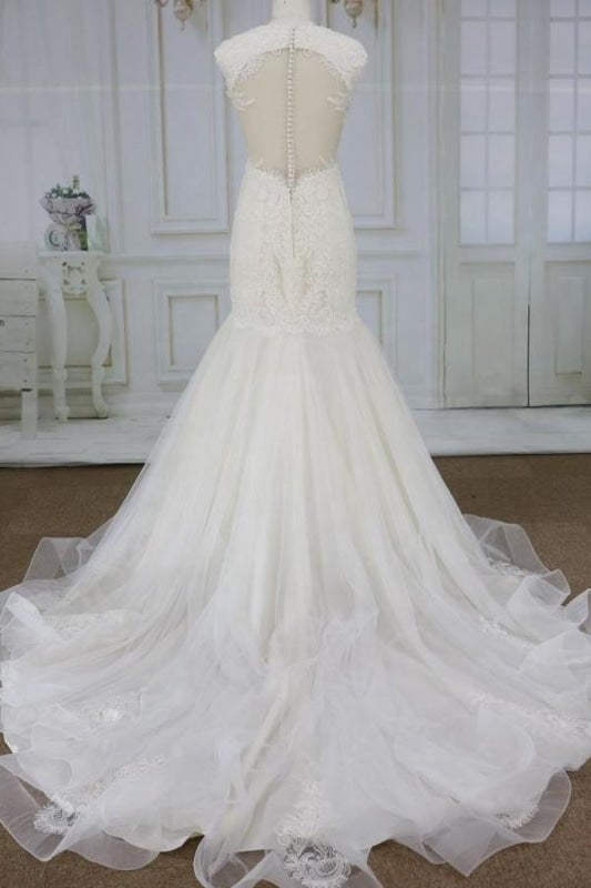 Fantastische Illusion Lace Mermaid Elegante Brautkleider