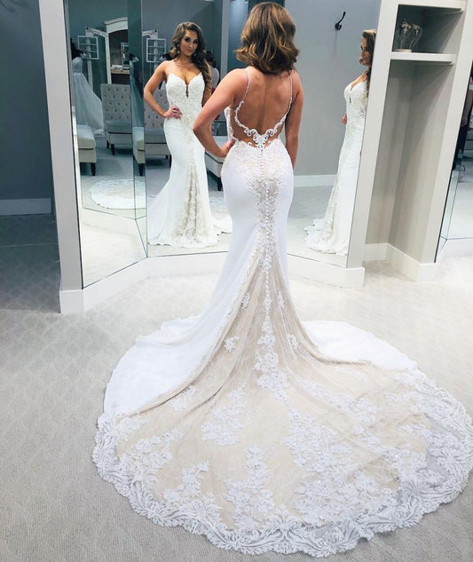 Rückenfreies Designer-Brautkleid mit Spaghettiträgern