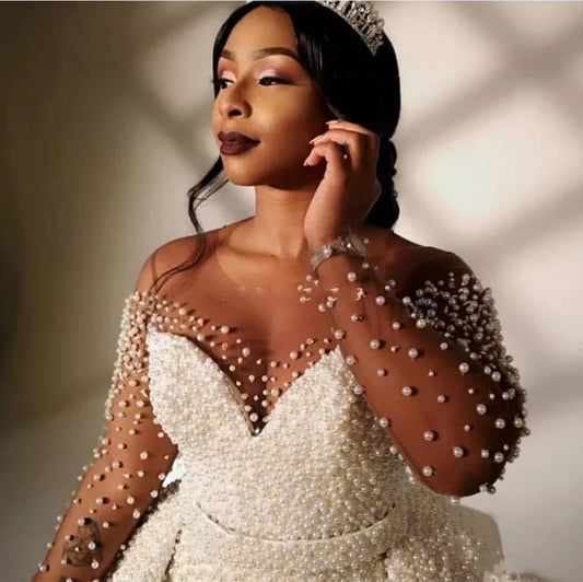 Plus Size Meerjungfrau Kristall Spitze Perlen Schatz Lange Schleppe Afrikanische Maßgefertigte Rüschenloses Brautkleid