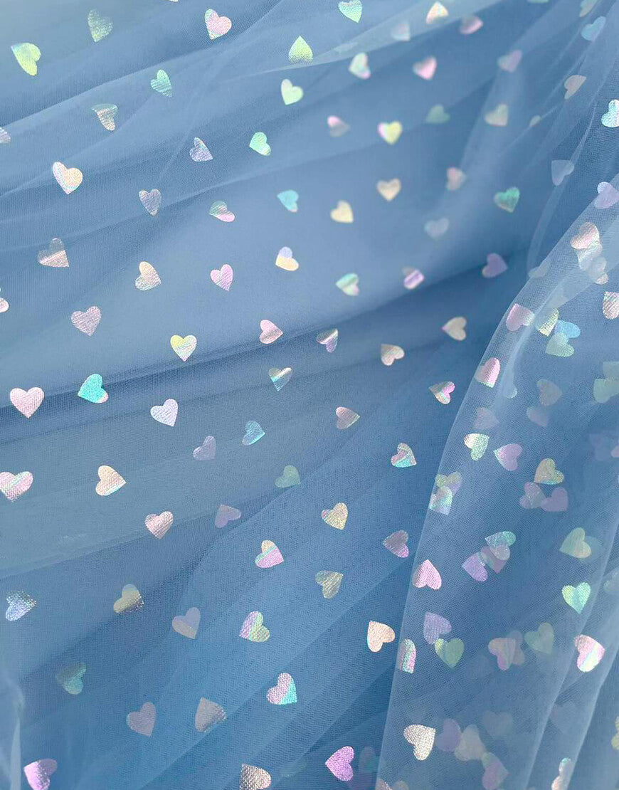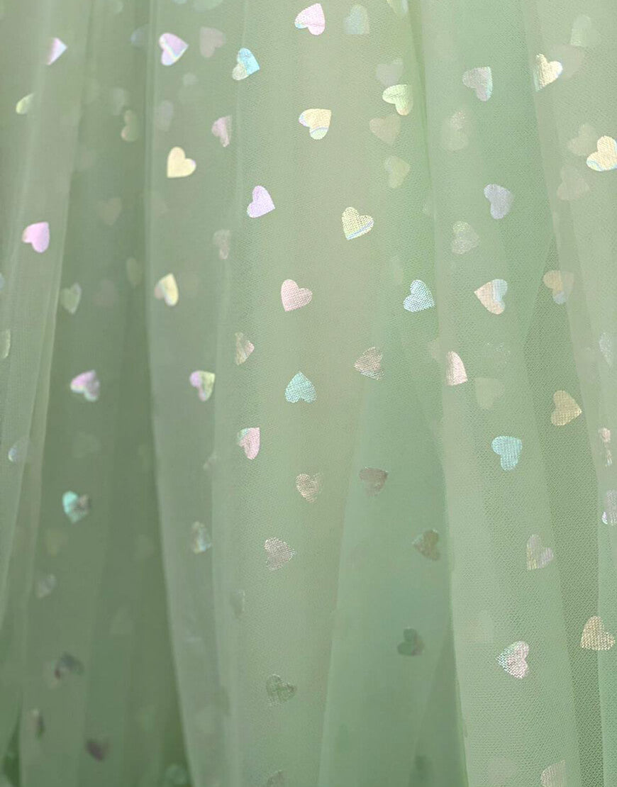 - Stoff: Tüllstoff mit herzförmigen Punkten