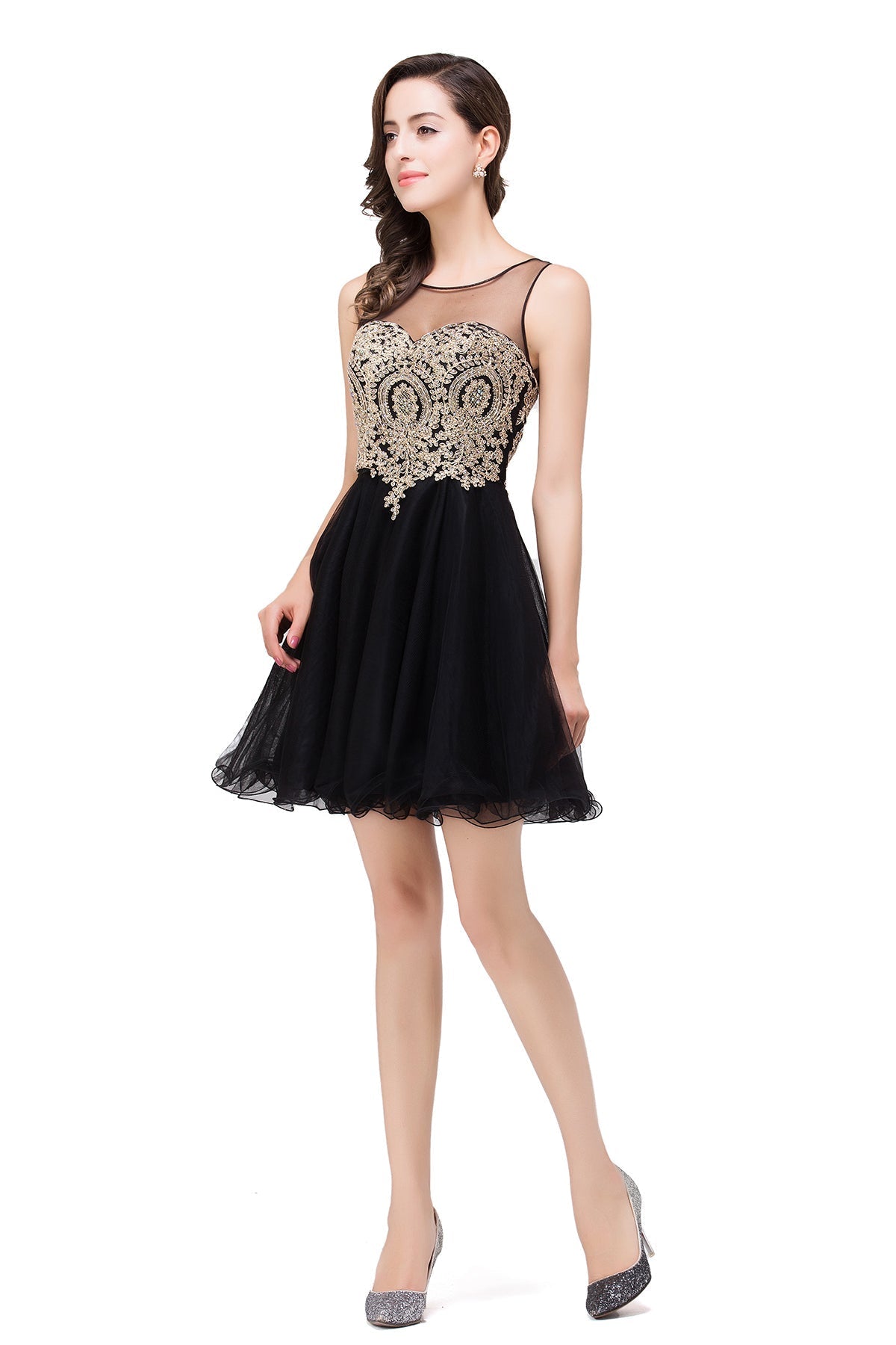 A-Linie Rundhals Kurz Ärmellos Applikationen Ballkleider