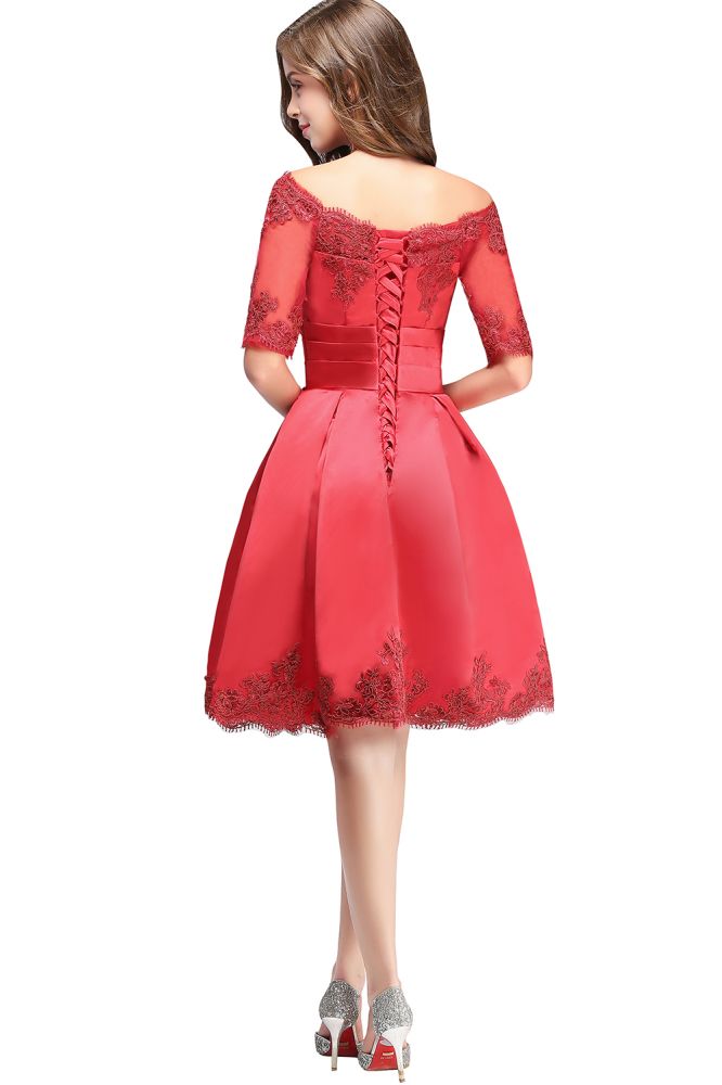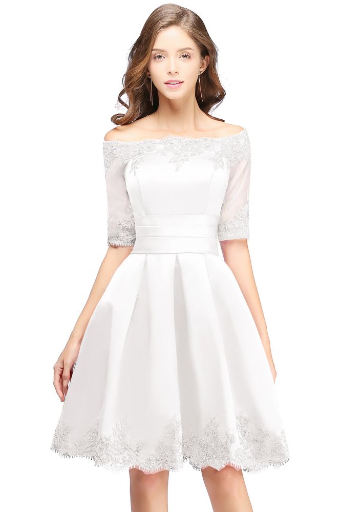 A-Linie, schulterfrei, halbe Ärmel, kurze Spitzenapplikationen, Ballkleider