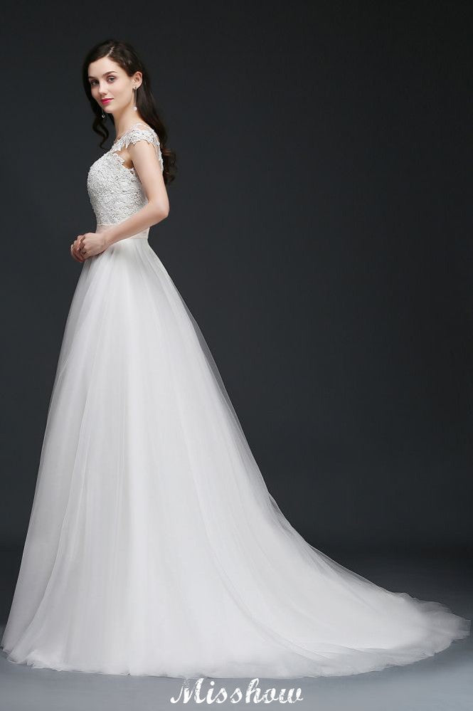 A-Linie U-Ausschnitt Hofschleppe Tüll Glamouröse Brautkleider mit Schärpe