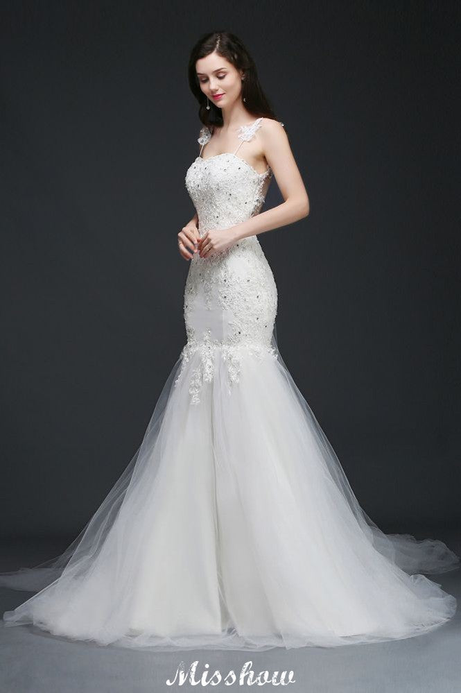 Perlenbesetztes Meerjungfrau-Spaghettiträger-romantisches Brautkleid