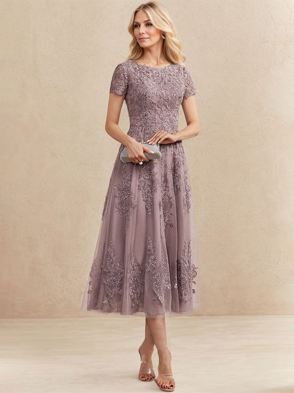 A-Linie U-Ausschnitt Wadenlang Tüll Spitze Mutter der Braut Kleid