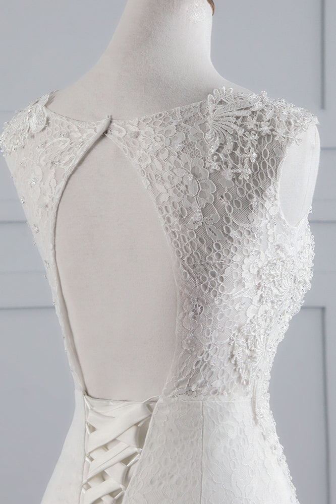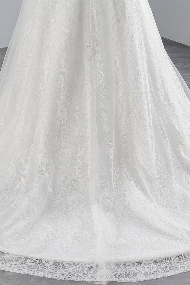 Glamouröses langes Meerjungfrau-Brautkleid mit Tüllapplikationen und Spitze