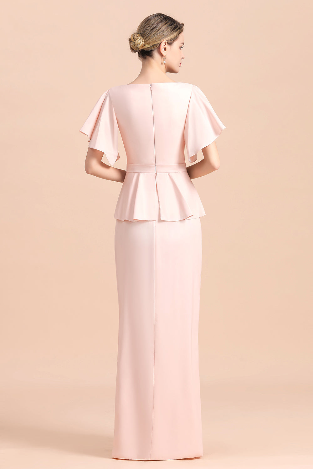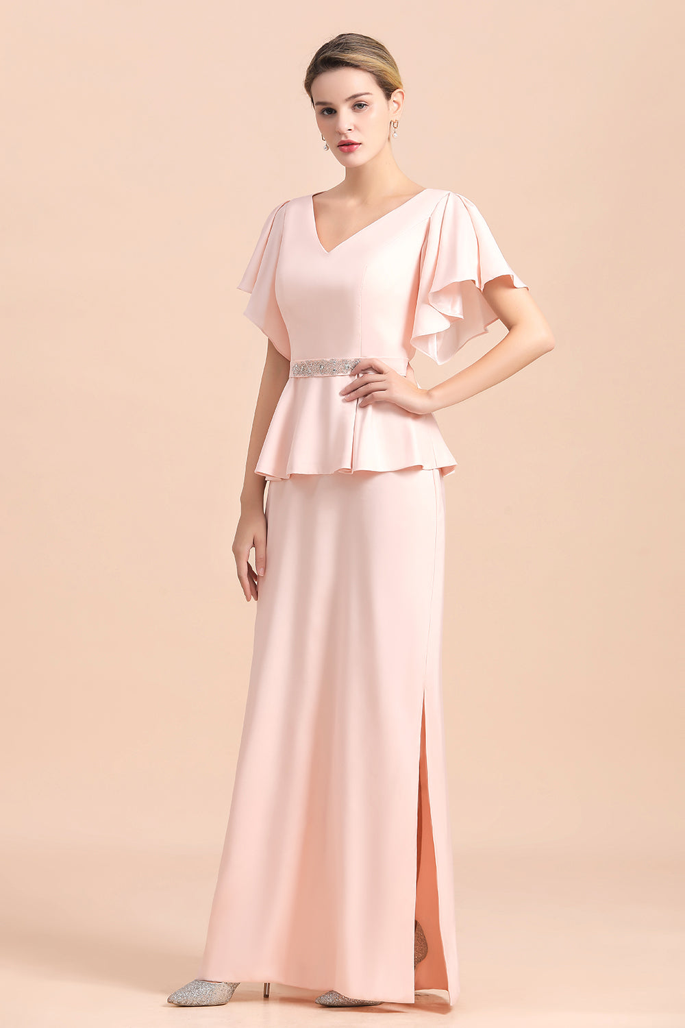 Glamouröses Kleid für die Brautmutter mit V-Ausschnitt, Schlitz vorne und Perlenbesatz