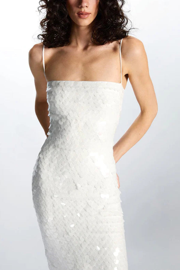 Glamouröser Glitzer-Spaghettiträger-Midi-Kleider für Geburtstagspartys