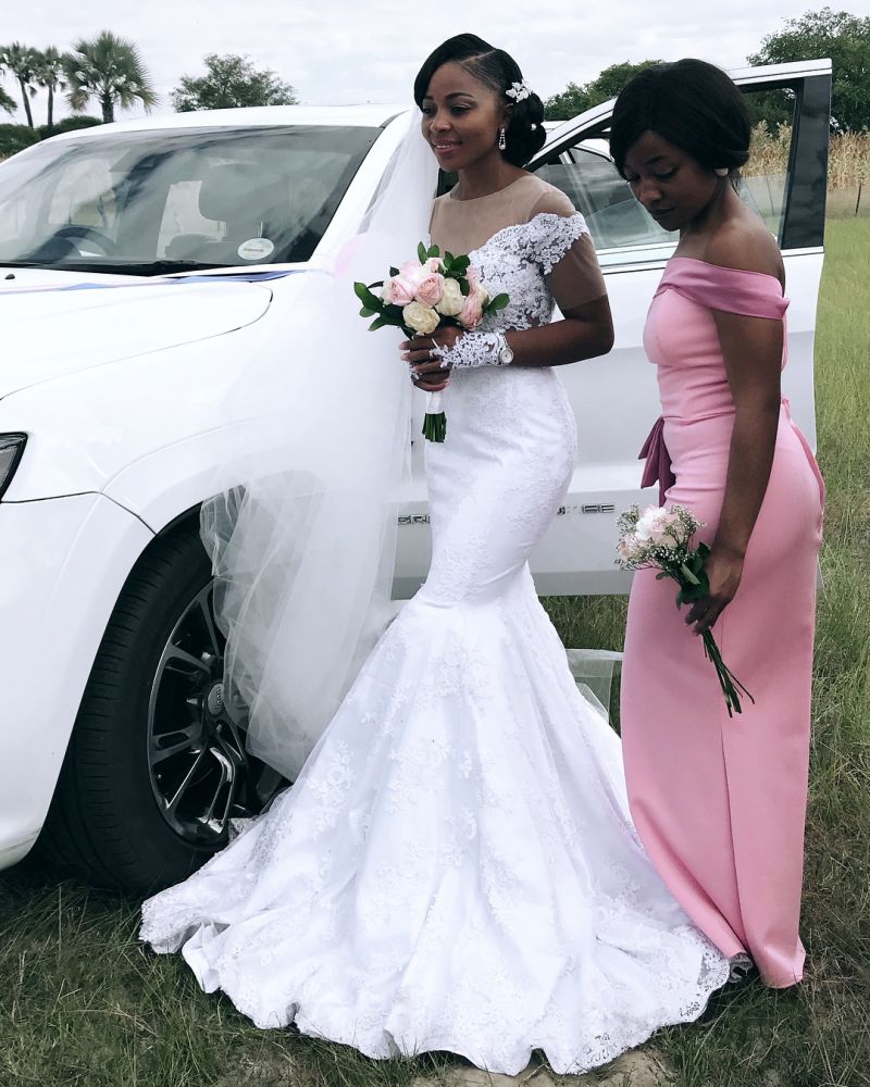 Applikationen transparenter Tüll Meerjungfrau Brautkleid Plissee Brautmode