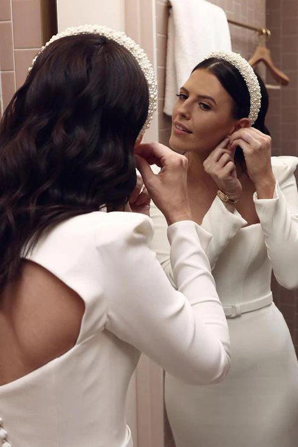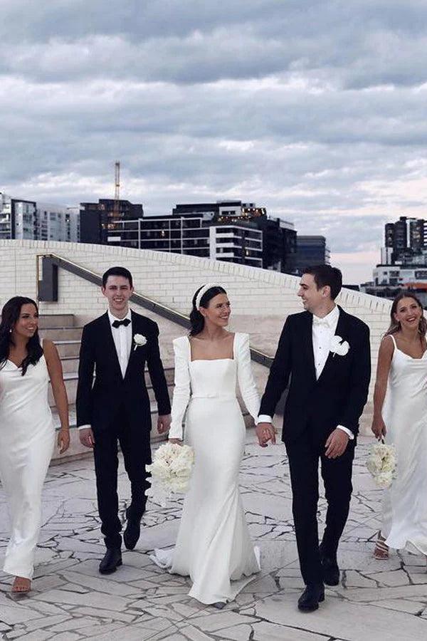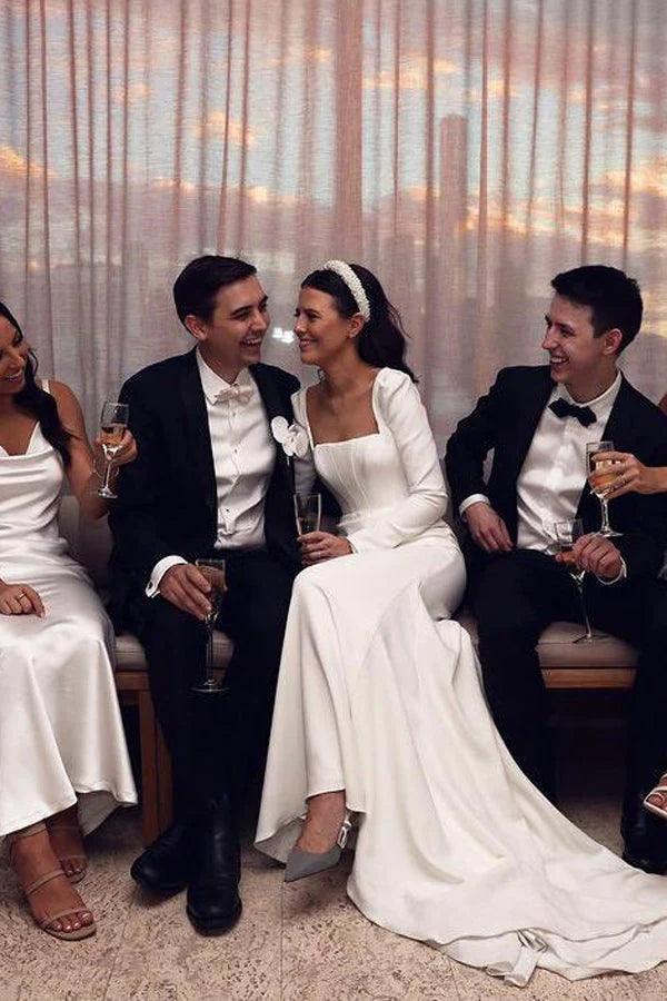 Retro Satin Lange Ärmel Sweep Schleppe Etuikleid Brautkleid