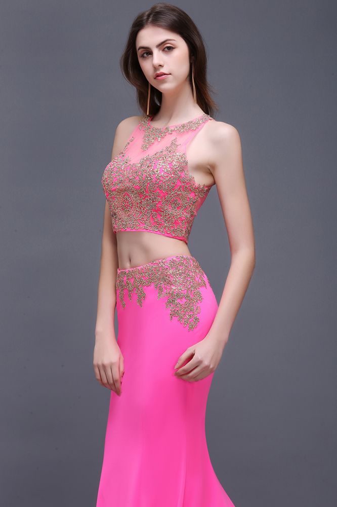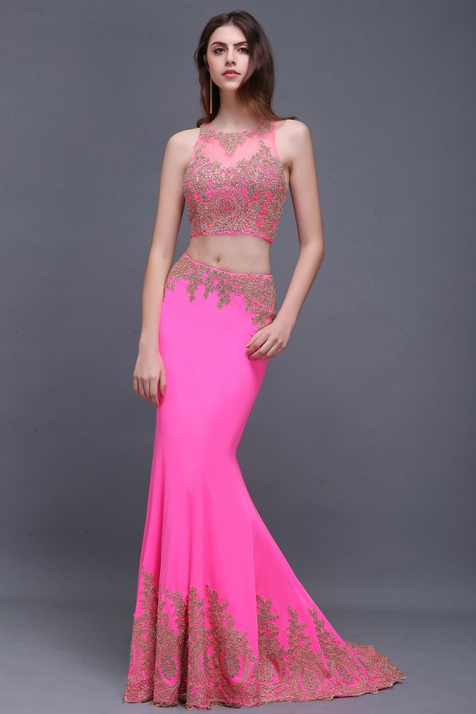 Etui-Linie Rund Satin Stretch Fuchsie Ballkleider