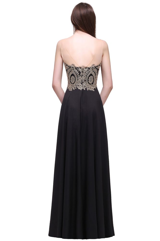 Etui-Linie U-Ausschnitt Bodenlang Applikation Ärmellos Lang Schwarz Ballkleider