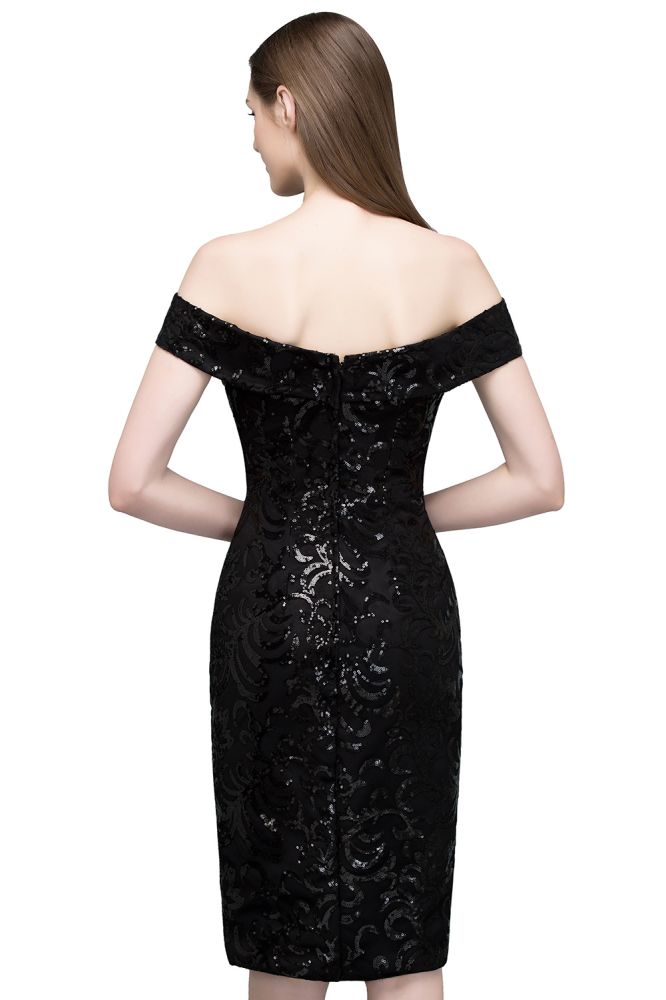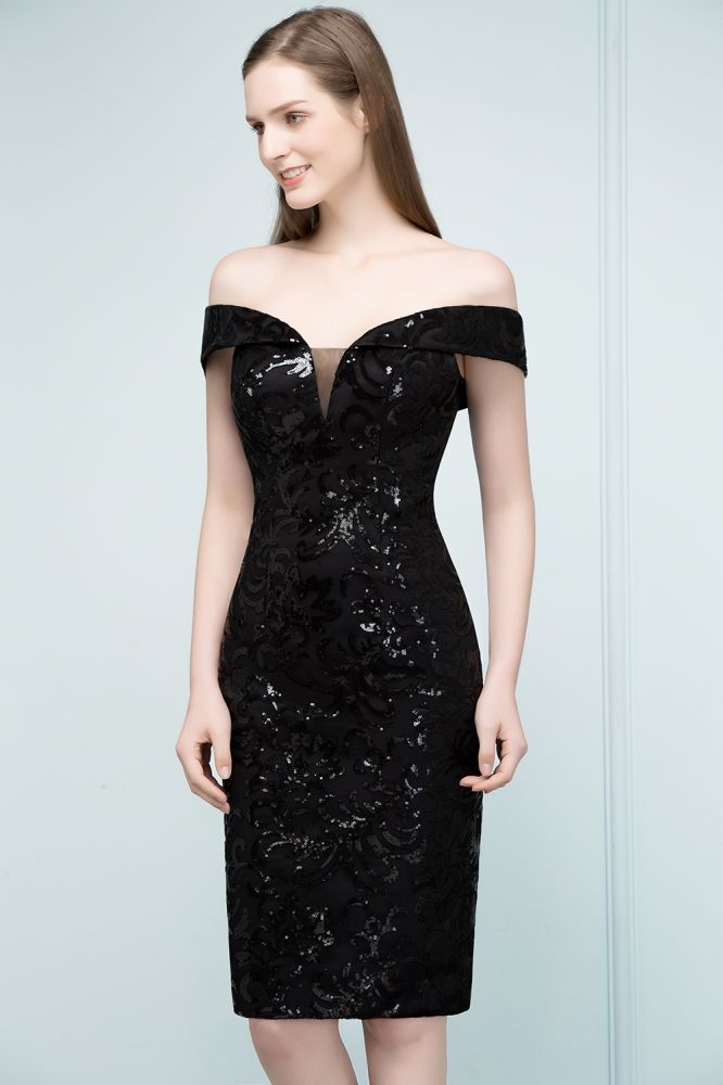 Kurzes, schulterfreies, schwarzes Ballkleid mit Pailletten