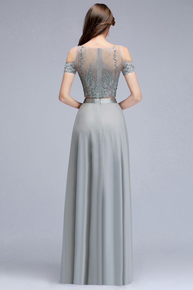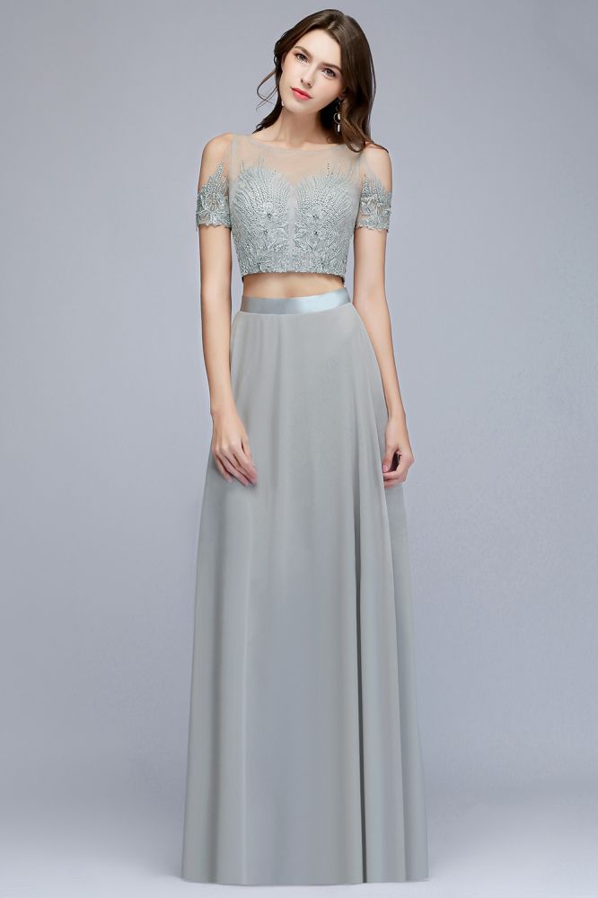 Zweiteilige bodenlange Chiffon-Ballkleider mit Applikationen