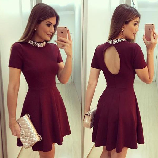 Vestido de fiesta burdeos con encanto, vestidos de fiesta cortos de satén económicos