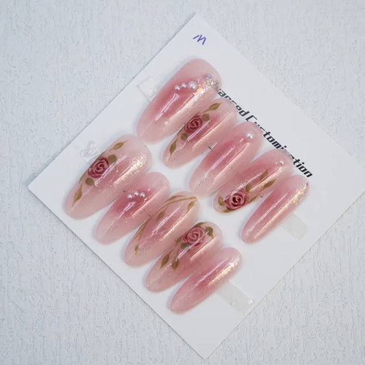 Diseño de ataúd cuadrado de rosa fantasía transparente rosa en uñas