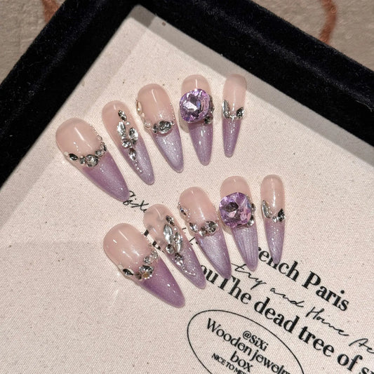 Uñas postizas acrílicas de alta calidad con purpurina, estilo bailarina, prensa francesa, gel ABS.