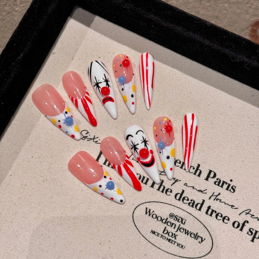 Uñas postizas de gel ABS de alta calidad, desmontables, con diseño de payaso dibujado a mano.