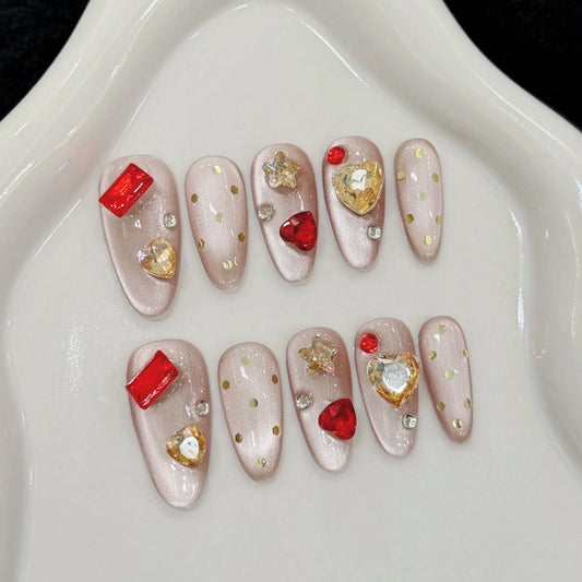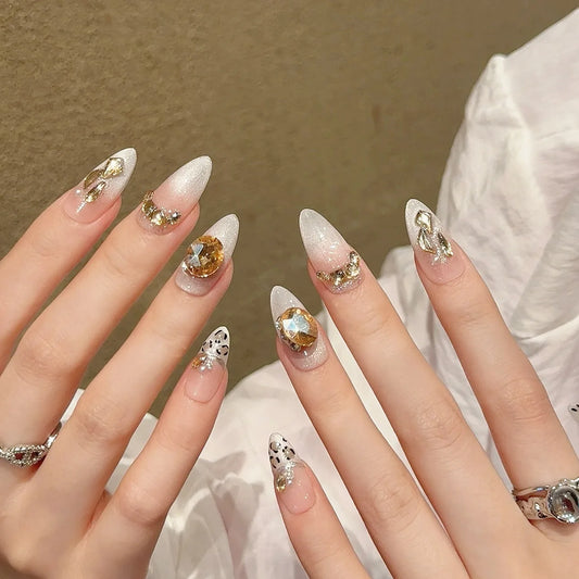 Nuevas uñas postizas de alta calidad estilo Hepburn con diseño de mariposa, diamantes y lunares, versátiles para mujer, con simulación de maquillaje