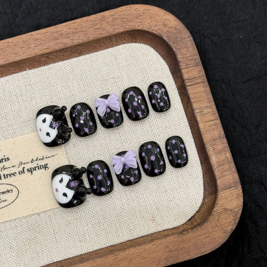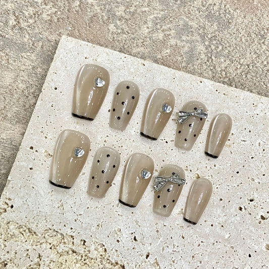 Nuevo estilo de uñas cortas con lazo de lunares moldeadas a mano en 3D